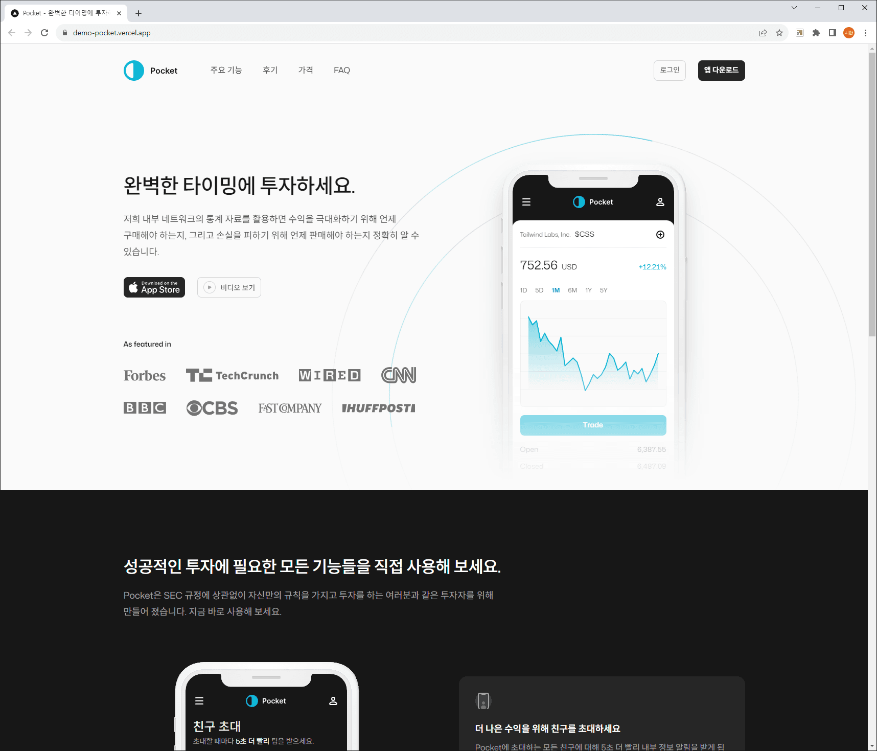 가상의 모바일 앱을 소개하는 랜딩 페이지입니다.